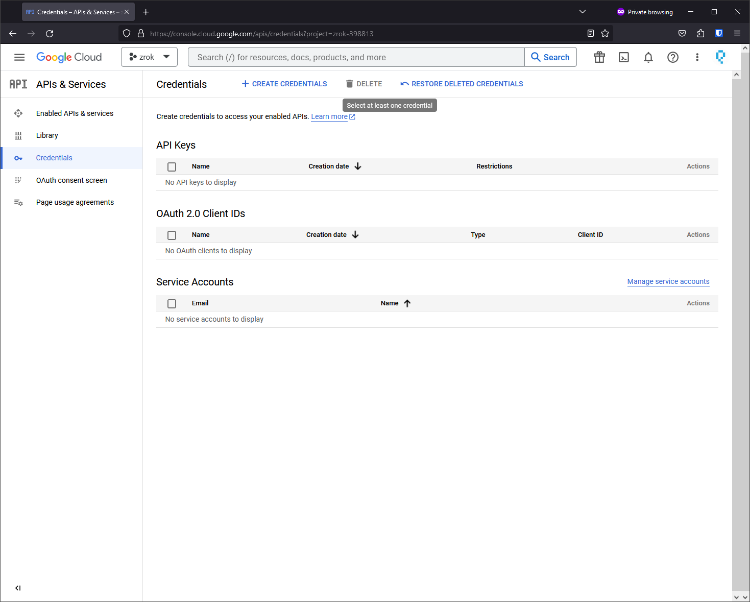 Navigate to: APIs & Services > Credentials > + Create Credentials