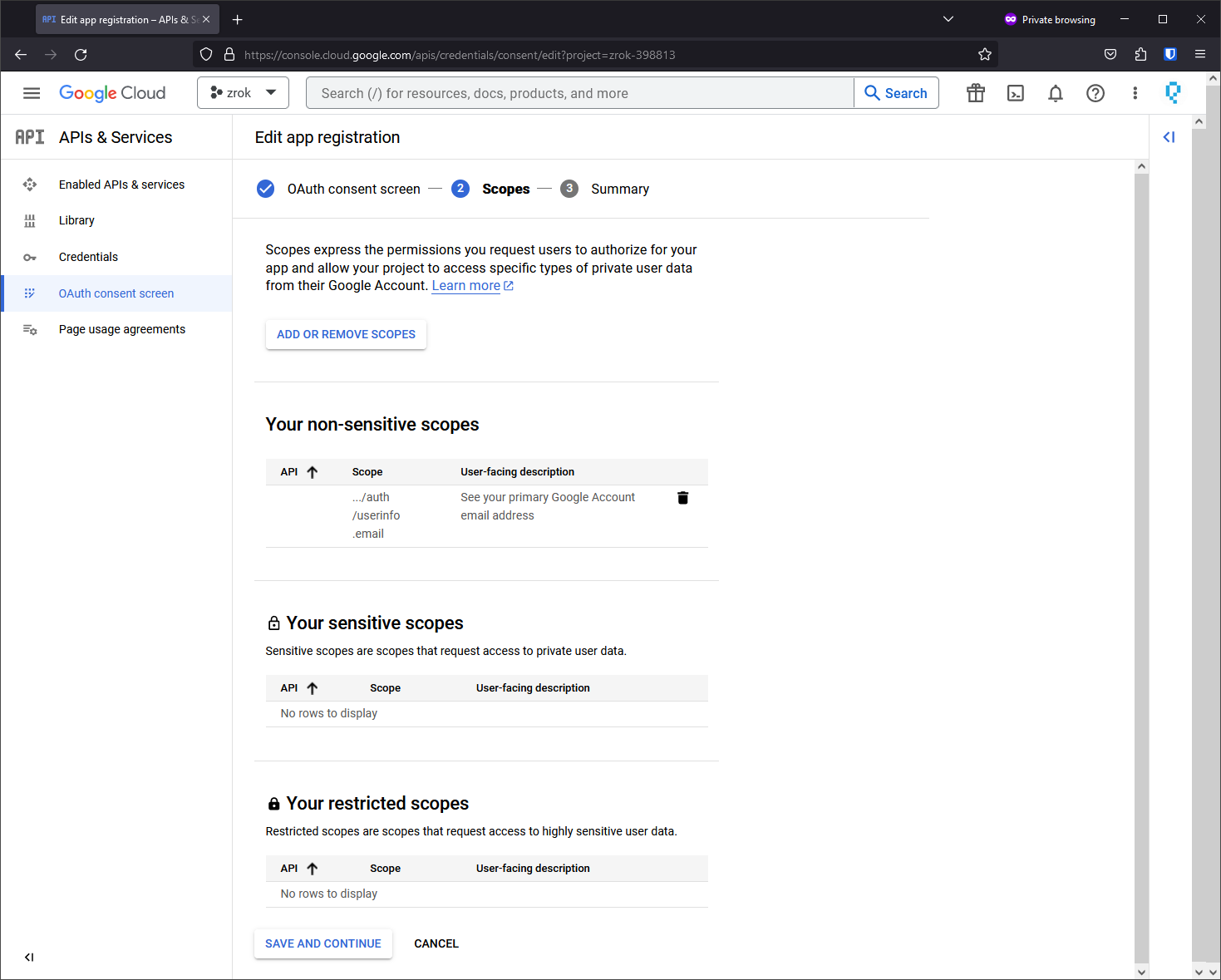 Add the ../auth/userinfo.email scope (required for zrok to receive user email addresses):